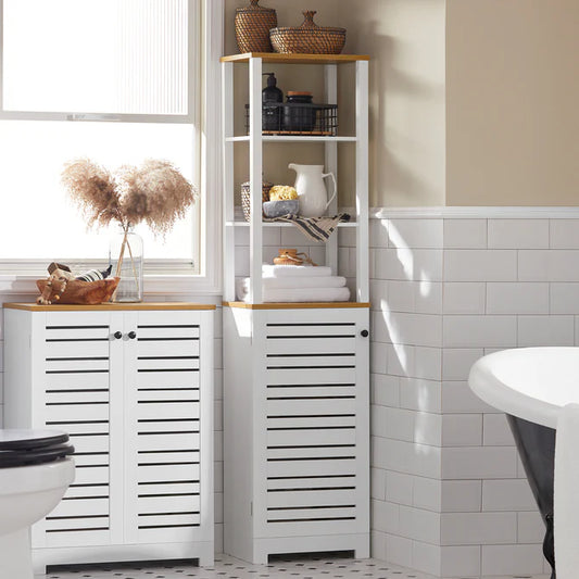 Højt badeværelsesskab med flere rum, hvid
