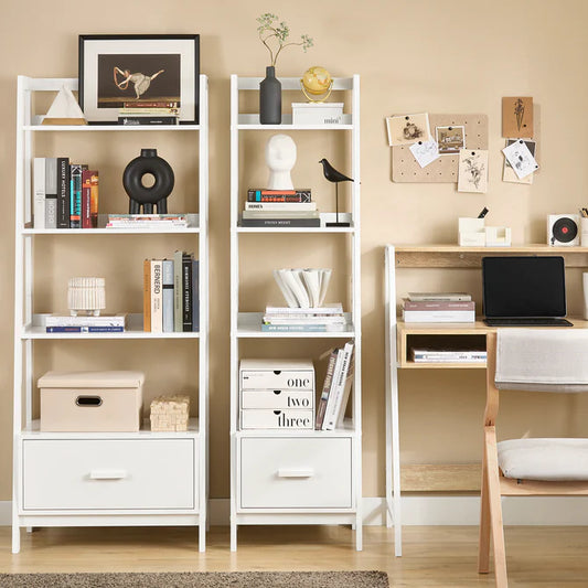 Stigereol med 4 hylder og skuffe, hvid