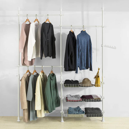 Justerbart tøjstativ med yderligere opbevaring, hvid