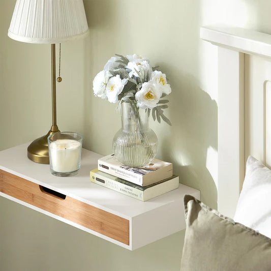 Sengebord med skuffe, hvid