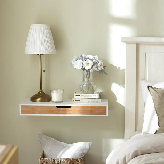 Vægskuffe / hylde (60 cm lang), bambus / hvid
