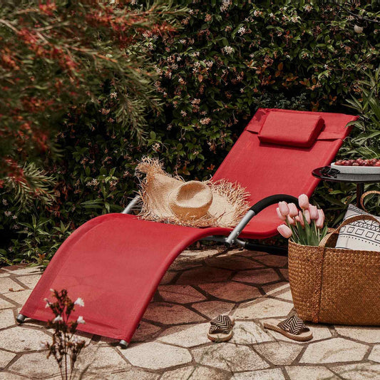 Moderne solseng med nakkestøtte, rød