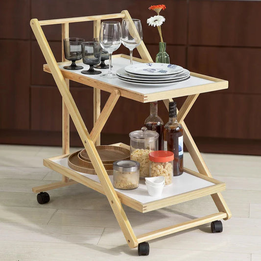Elegant køkkenvogn med 2 hylder med hvid plade, træ