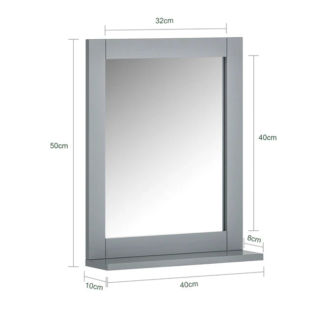 - Spejlstørrelse: B40 * H50 cm, Hyldestørrelse: B40 * D10 cm