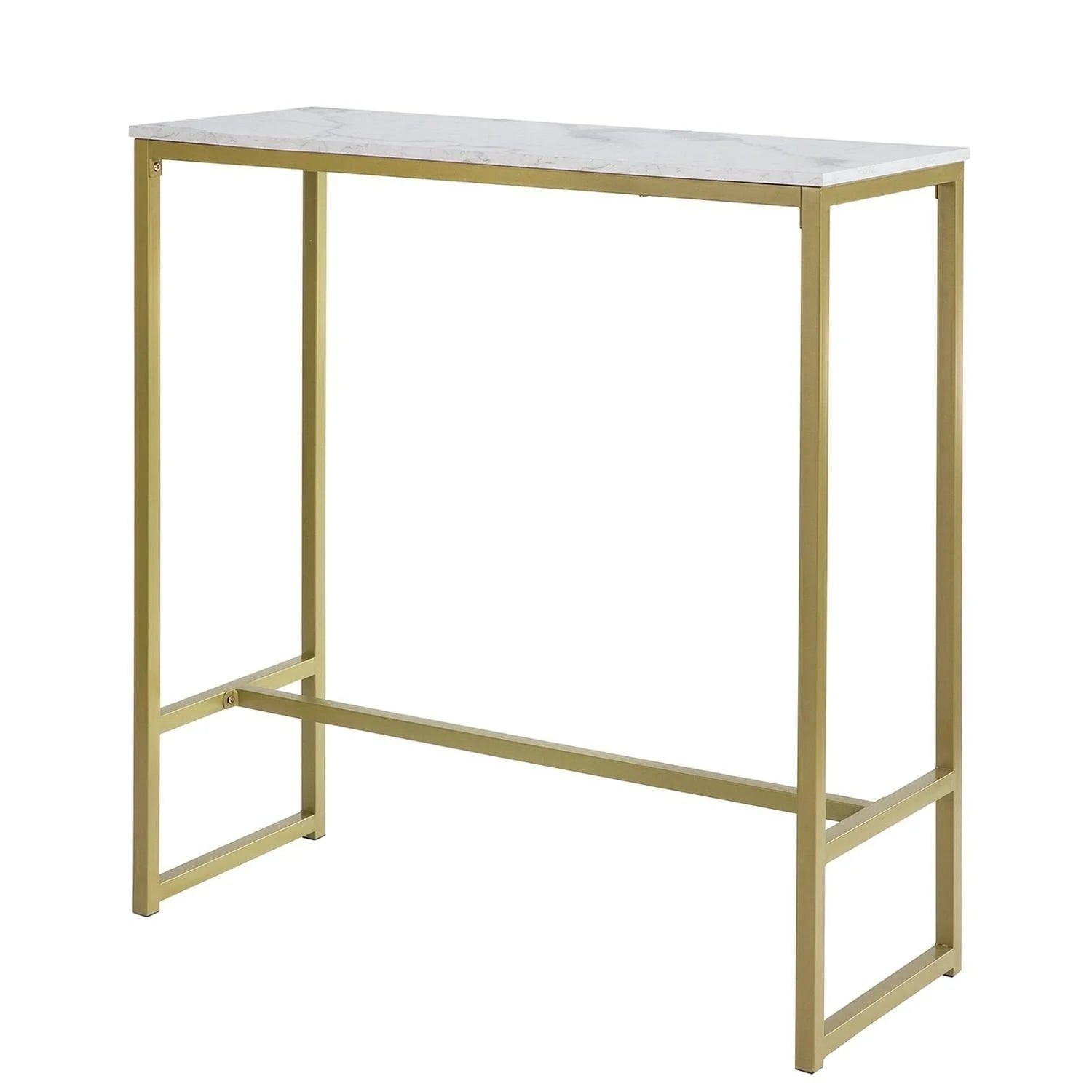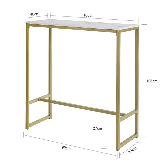 Konsolbord / barbord / arbejdsbord med plade i marmor-mønster, hvid / guld