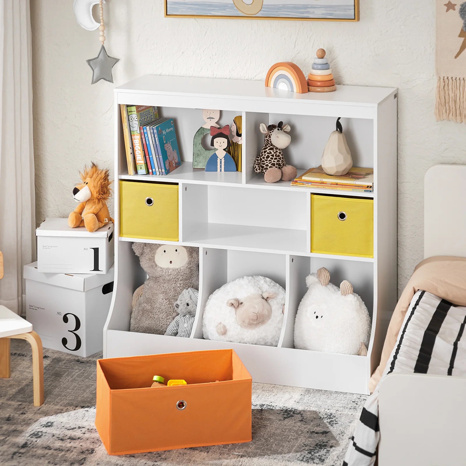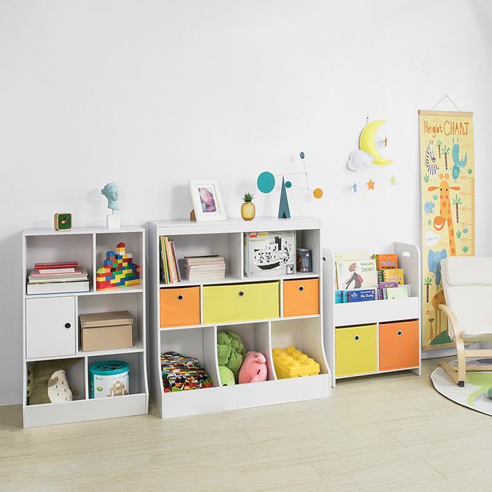Moderne design, enkelt og alligevel praktisk. Organiser bøger og legetøj separat for at imødekomme børns og forældres forskellige behov.