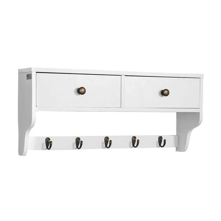 Knagerække med 5 kroge og 2 små skuffer, hvid