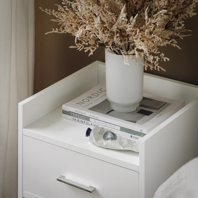 - Alsidigt natbord i hvid: ideel til gange, kontorer, soveværelser eller stuer