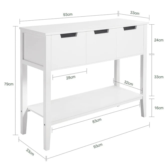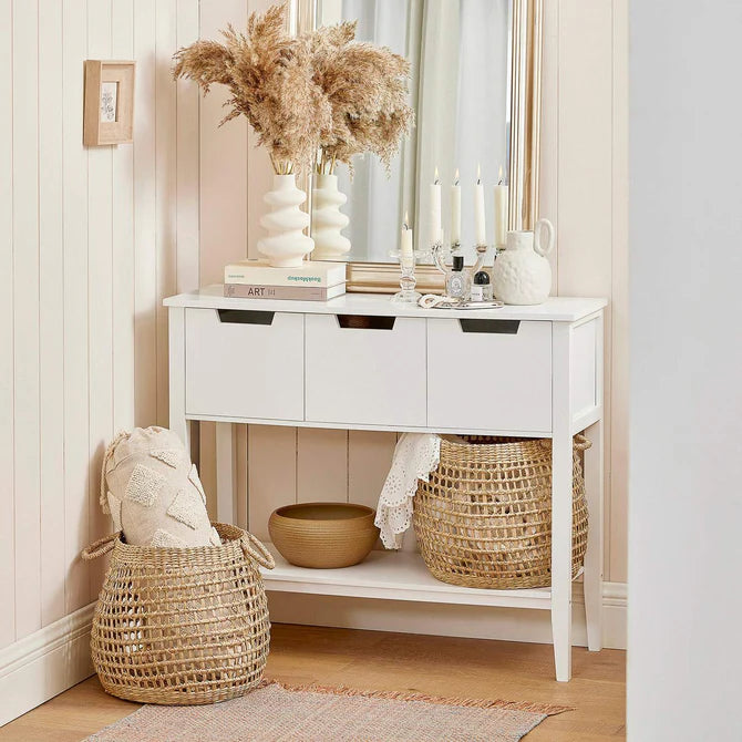 Dette kompakte bord er en praktisk tilføjelse til ethvert hjem. Gem de vigtigeste ting væk i skufferne og dekorer det med en flot blomst.