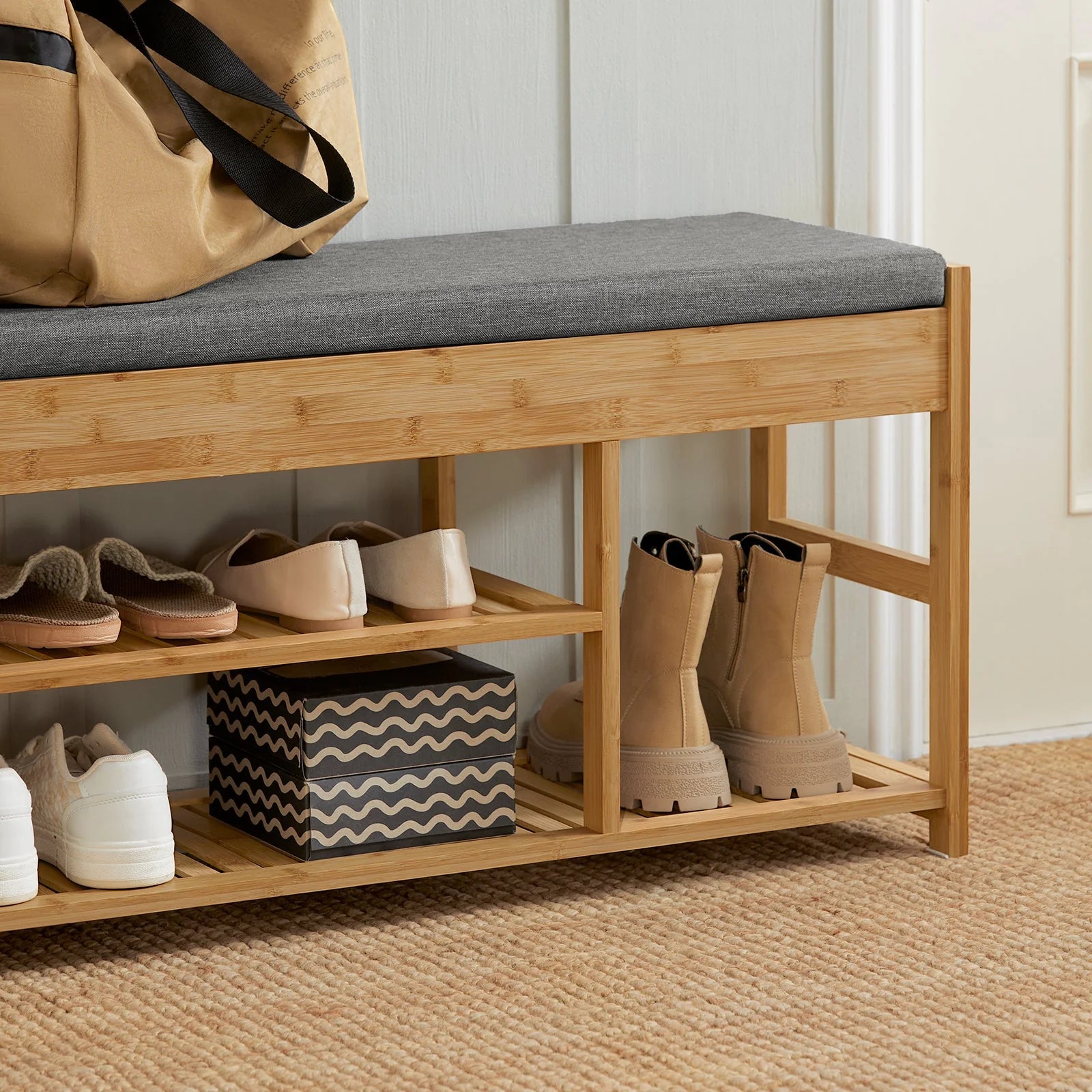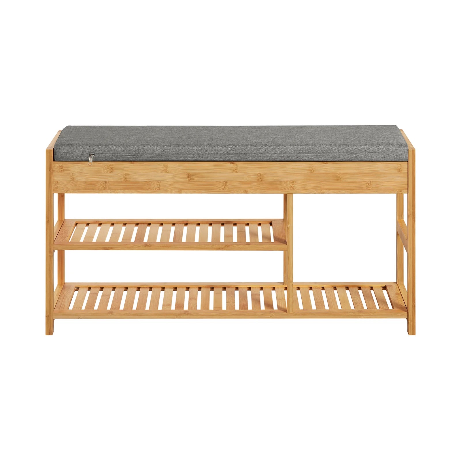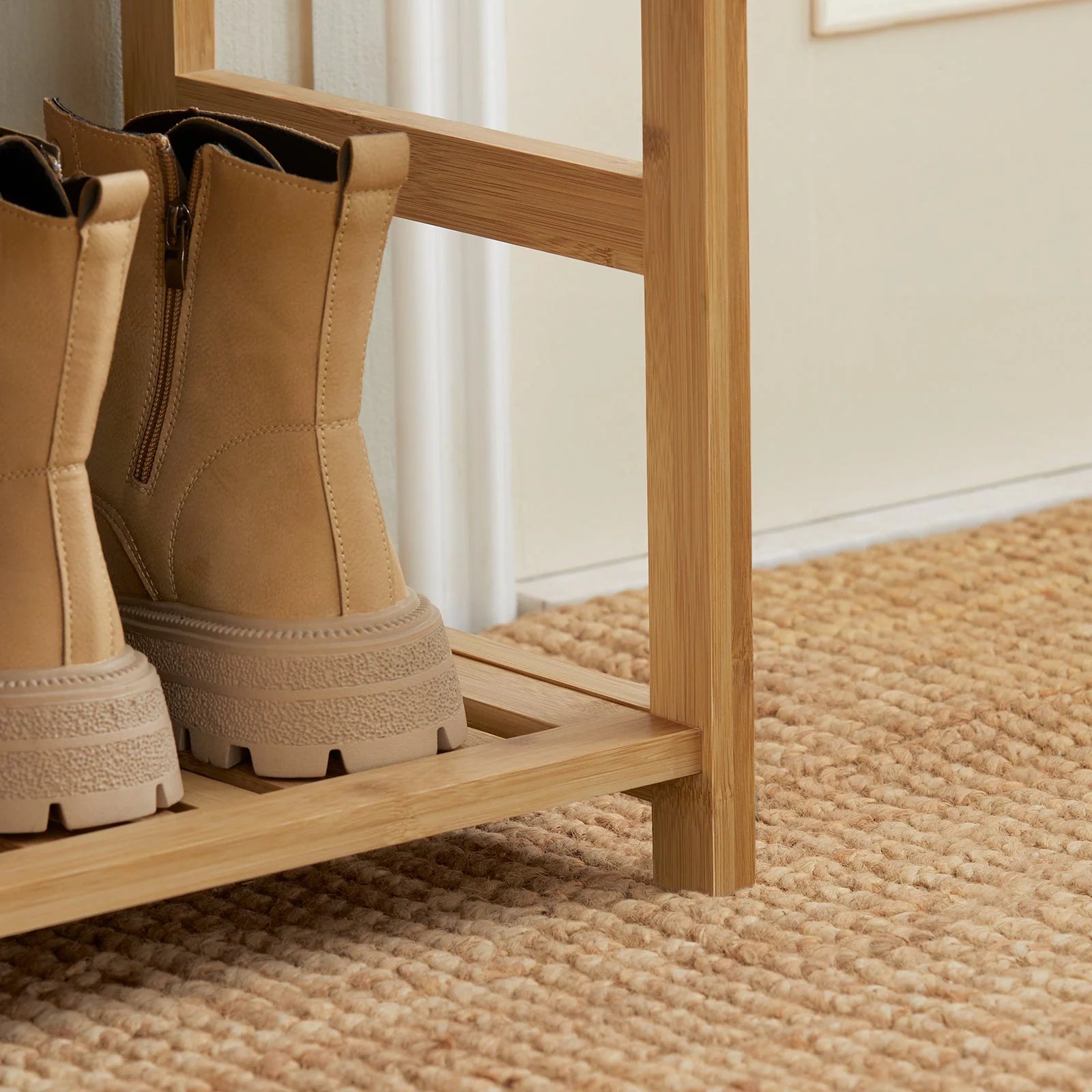 Udstyret med 2 små skuffer, 2 hylder til sko og 1 hylde til støvler. Toppen er foldbar