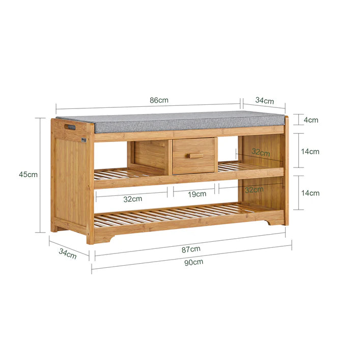 Udstyret med 1 små skuffer, 2 hylder til sko.