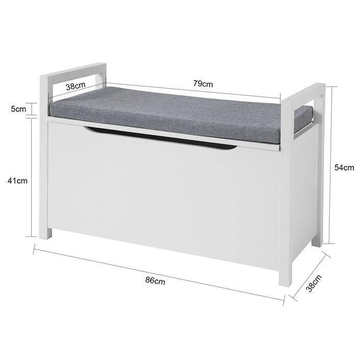 Bænk med pude og stor opbevaringsplads, hvid