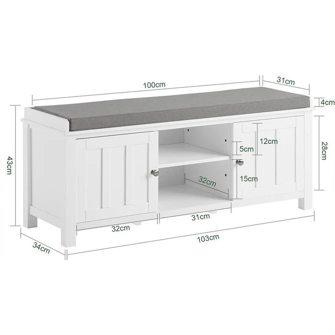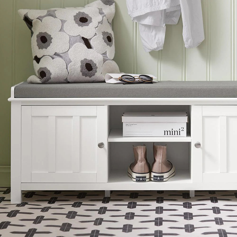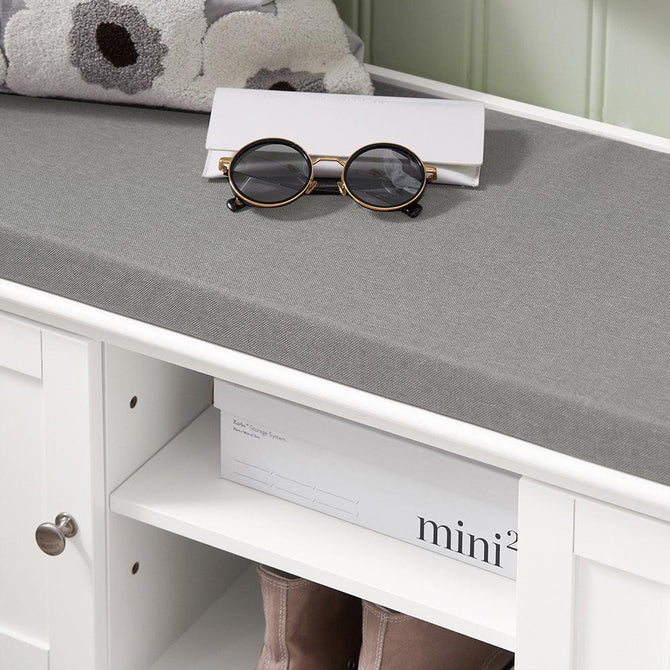 Skobænk med hynde (grå), hvid