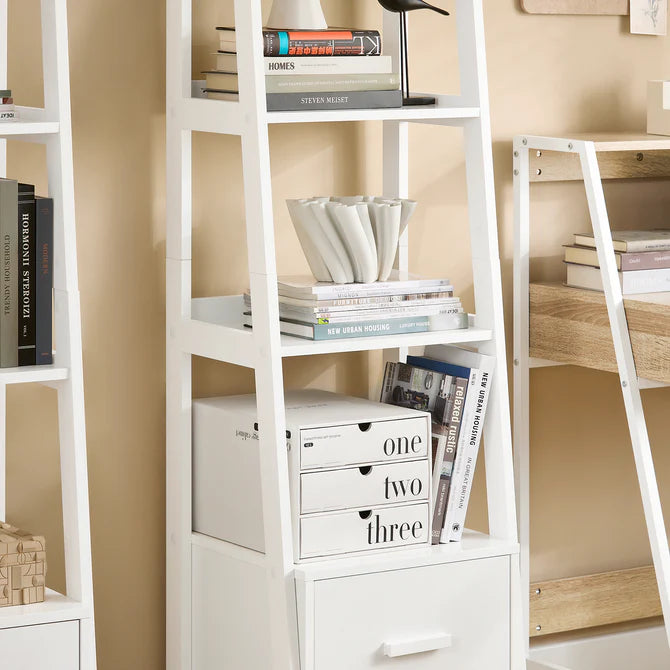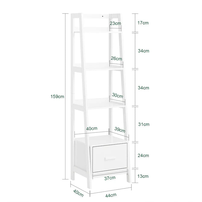 Stigereol med 4 hylder og skuffe, hvid