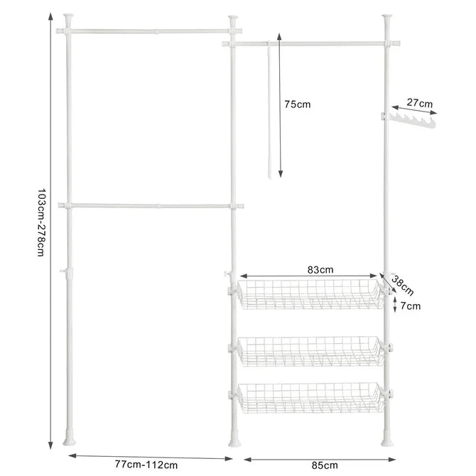 Takket være sin justerbare størrelse er dette reolsystem det perfekte klædeskab til et walk in closet, garderobe eller soveværelse.