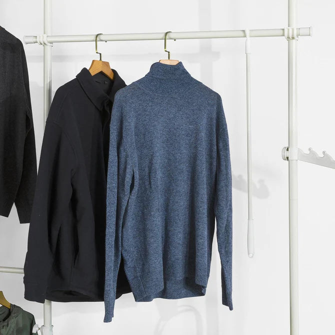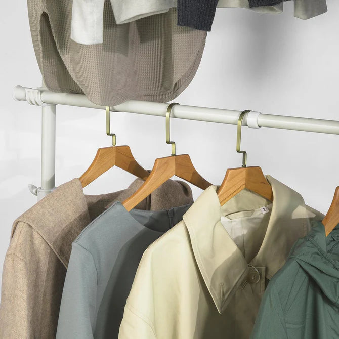 To uendeligt højdejusterbare tøjskinner giver et overblik, bestilling og giver masser af plads til kjoler, frakker, toppe og bukser.