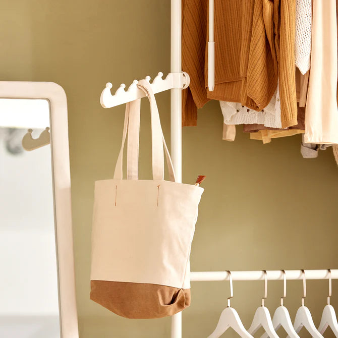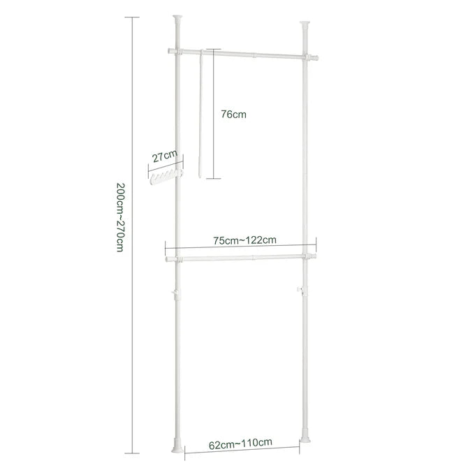 To uendeligt højdejusterbare tøjskinner giver et overblik, bestilling og giver masser af plads til kjoler, frakker, toppe og bukser.