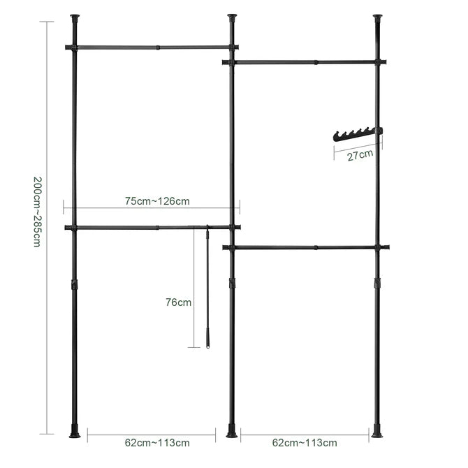 - 4 tøjbøjler med trinløs justering af højde (200 270 cm) og længde (75 122)
