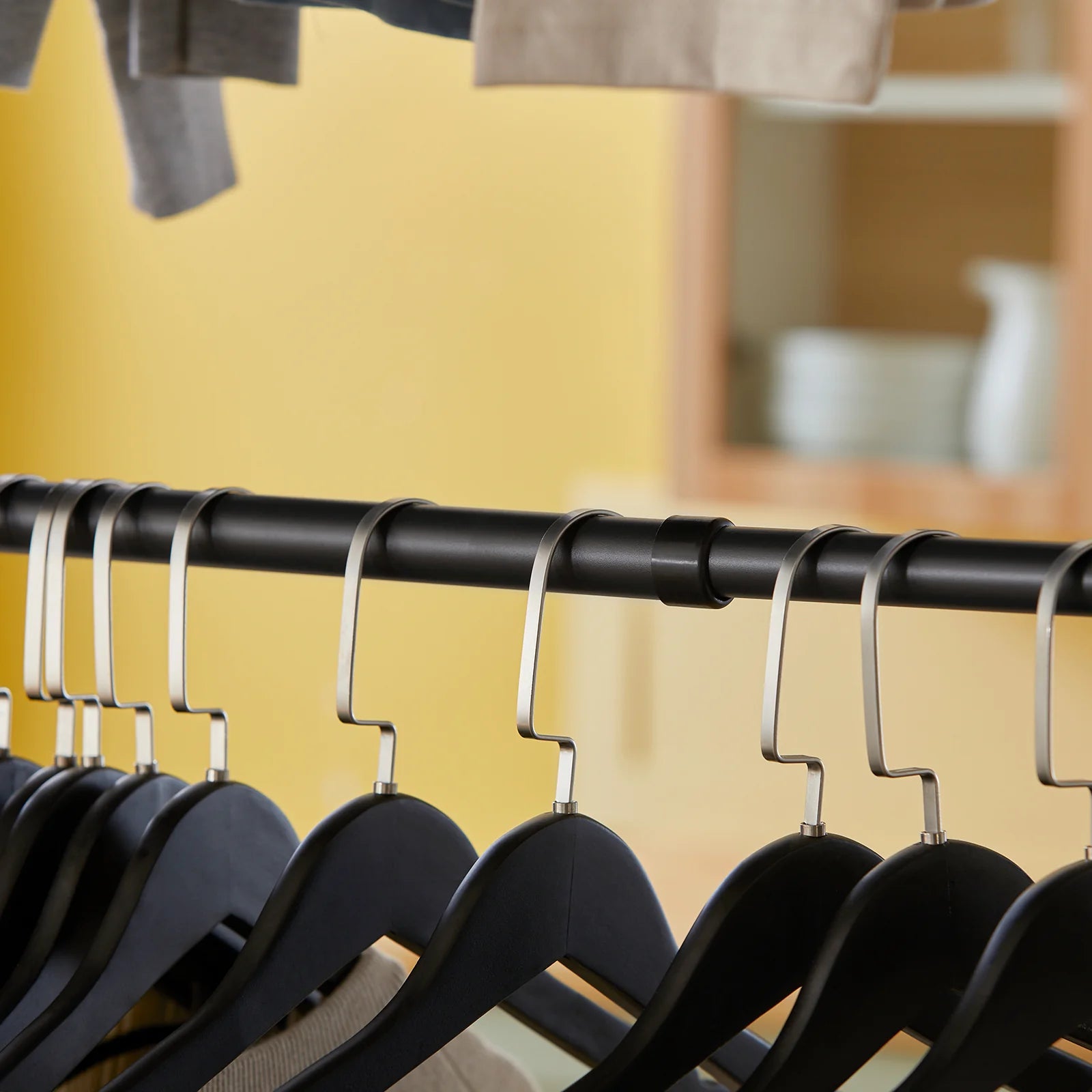 De 4 trinløst justerbare kjoleskinner giver plads til kjoler, frakker, toppe og bukser.